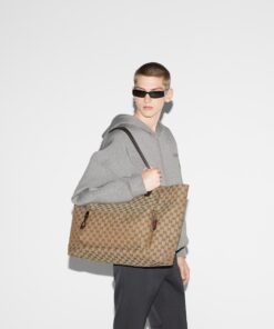 Gucci Tote Canvas Maxi Bag Beige And Dark Brown 18in/46cm 802166 FADUU 8657