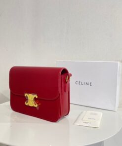 Celine Teen Triomphe Bag In Shiny Calfskin Red 18 Cm
