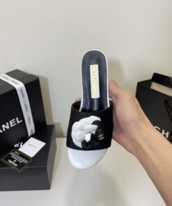 Chanel Slide Camellia Black White